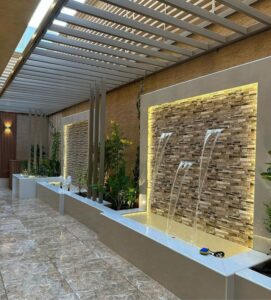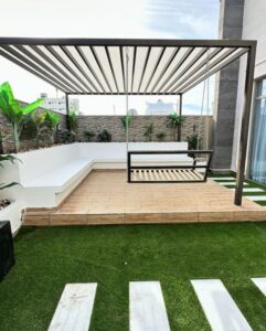 نقدم كل ما يلزم خدمات تنسيق وتصميم الحدائق والمظلات والسواتر والشلالات والنوافير والعشب الطبيعي والصناعي بمختلف الوانه